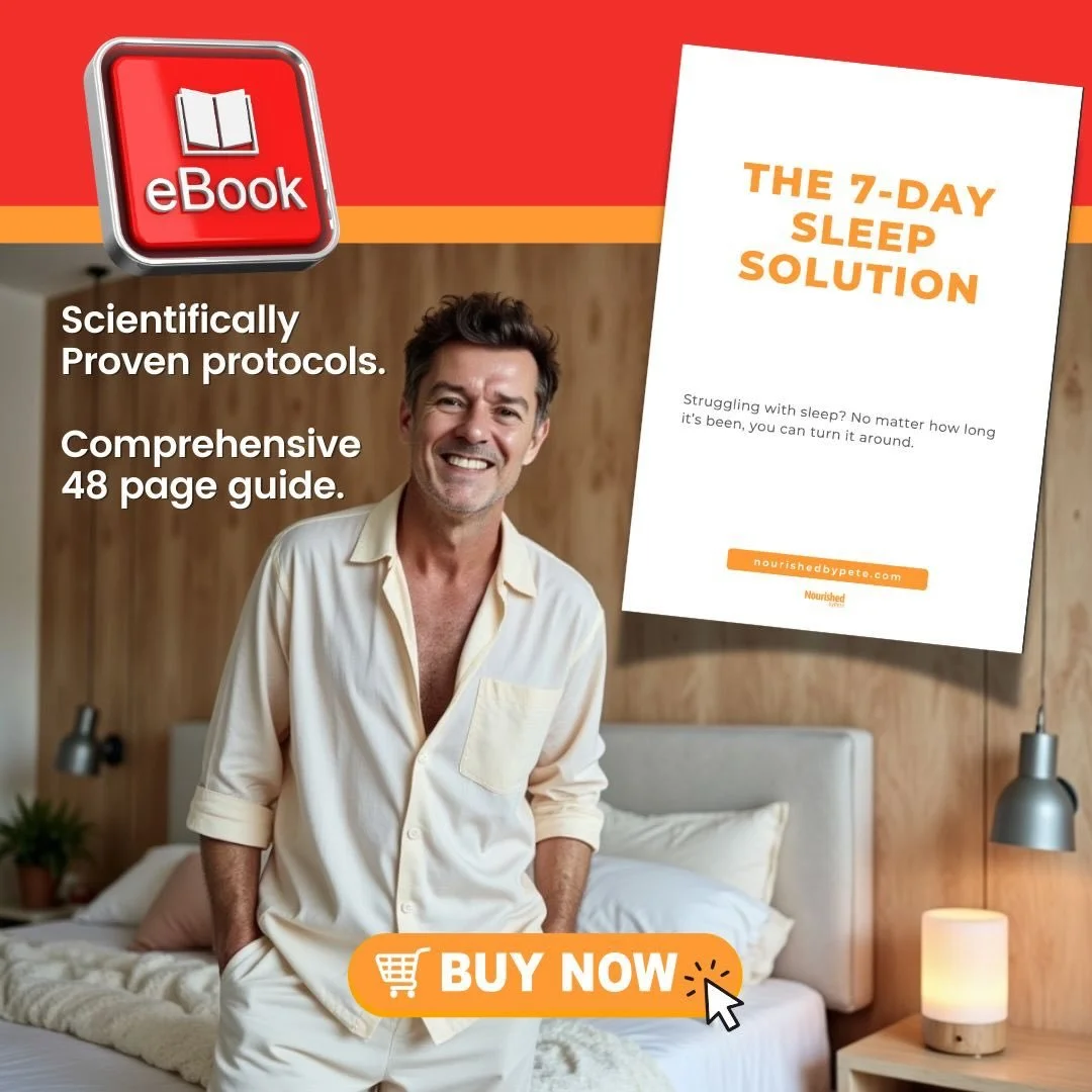 The 7-Day Sleep Solution ebook gives you clear, actionable steps to reset your sleep — from light exposure and meal timing to movement habits.